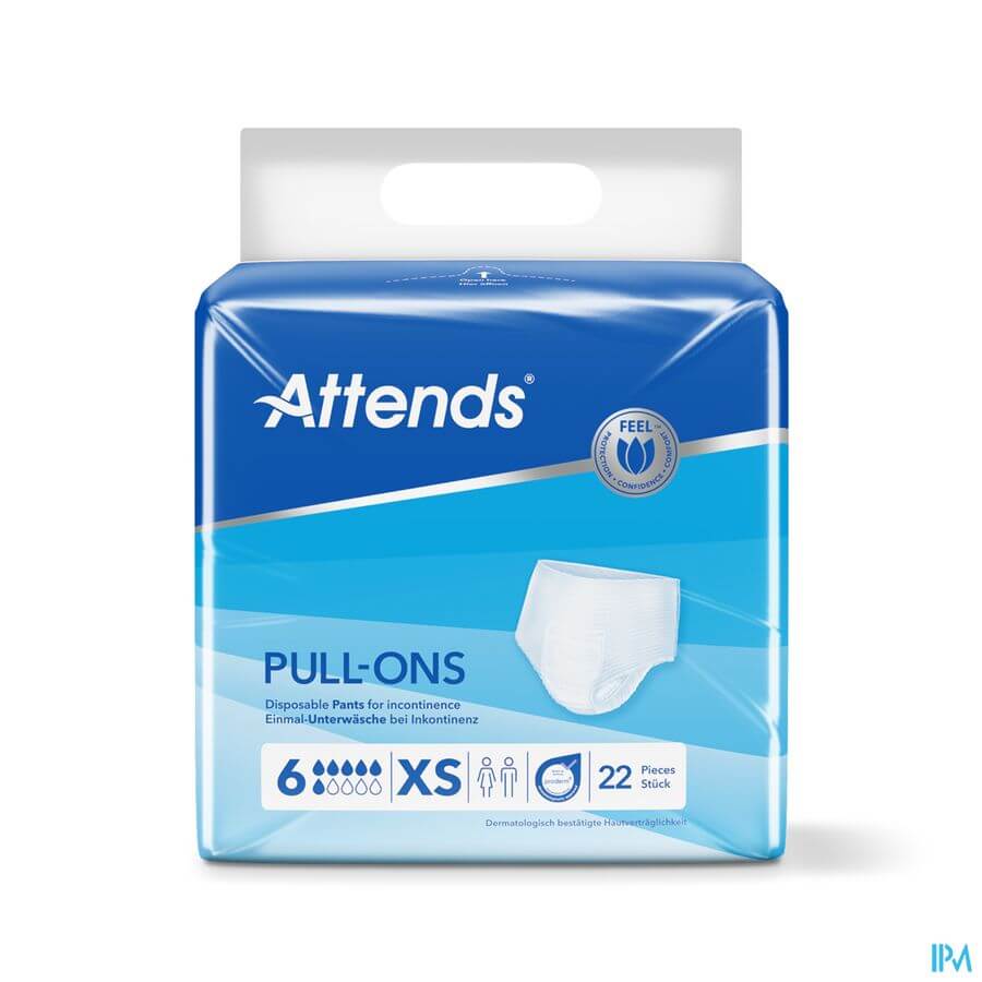 Attends Pull-Ons 6 XS sont des slips jetables doux et discrets qui se sentent comme des sous-vêtements normaux, conçus pour une incontinence modérée à forte.
